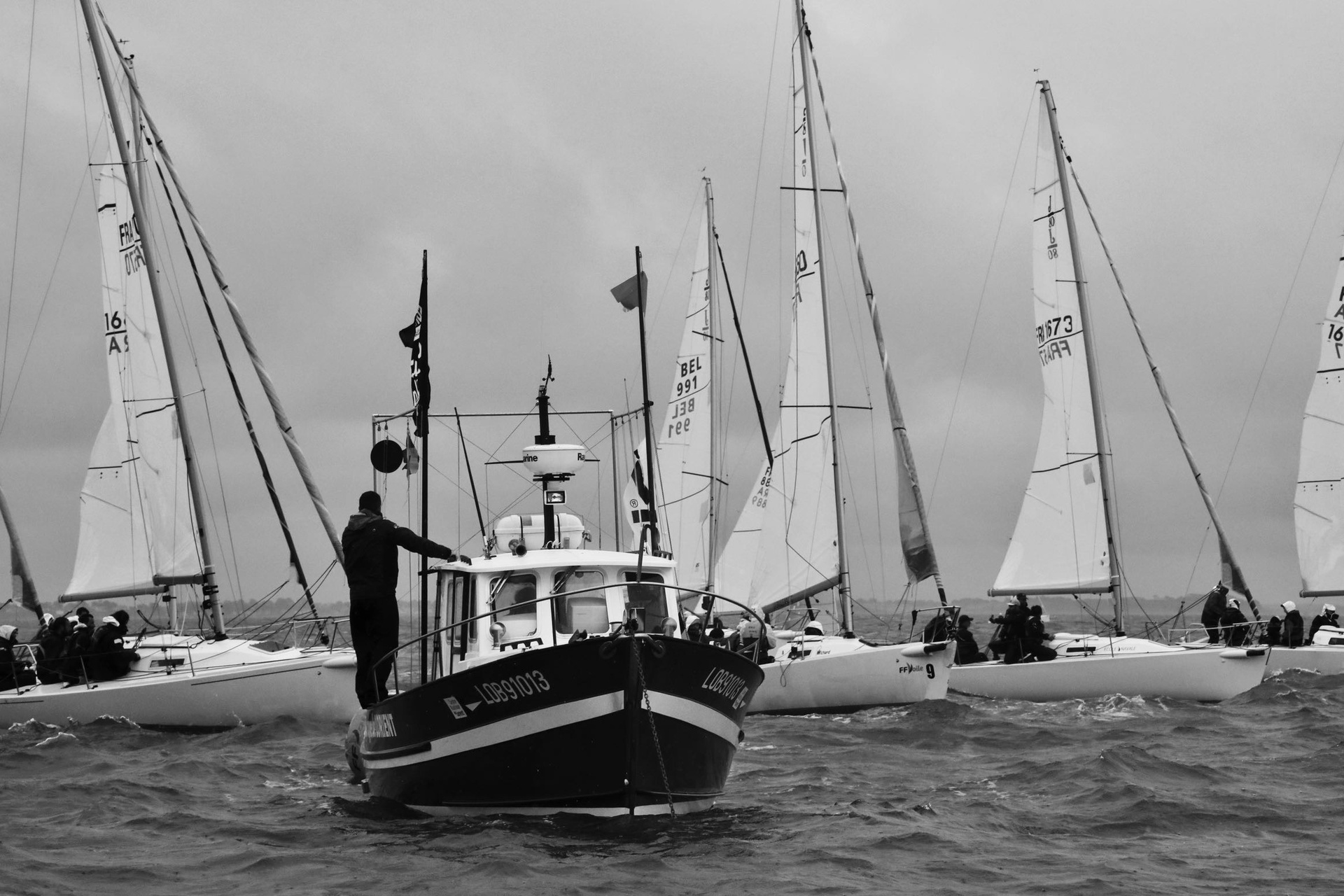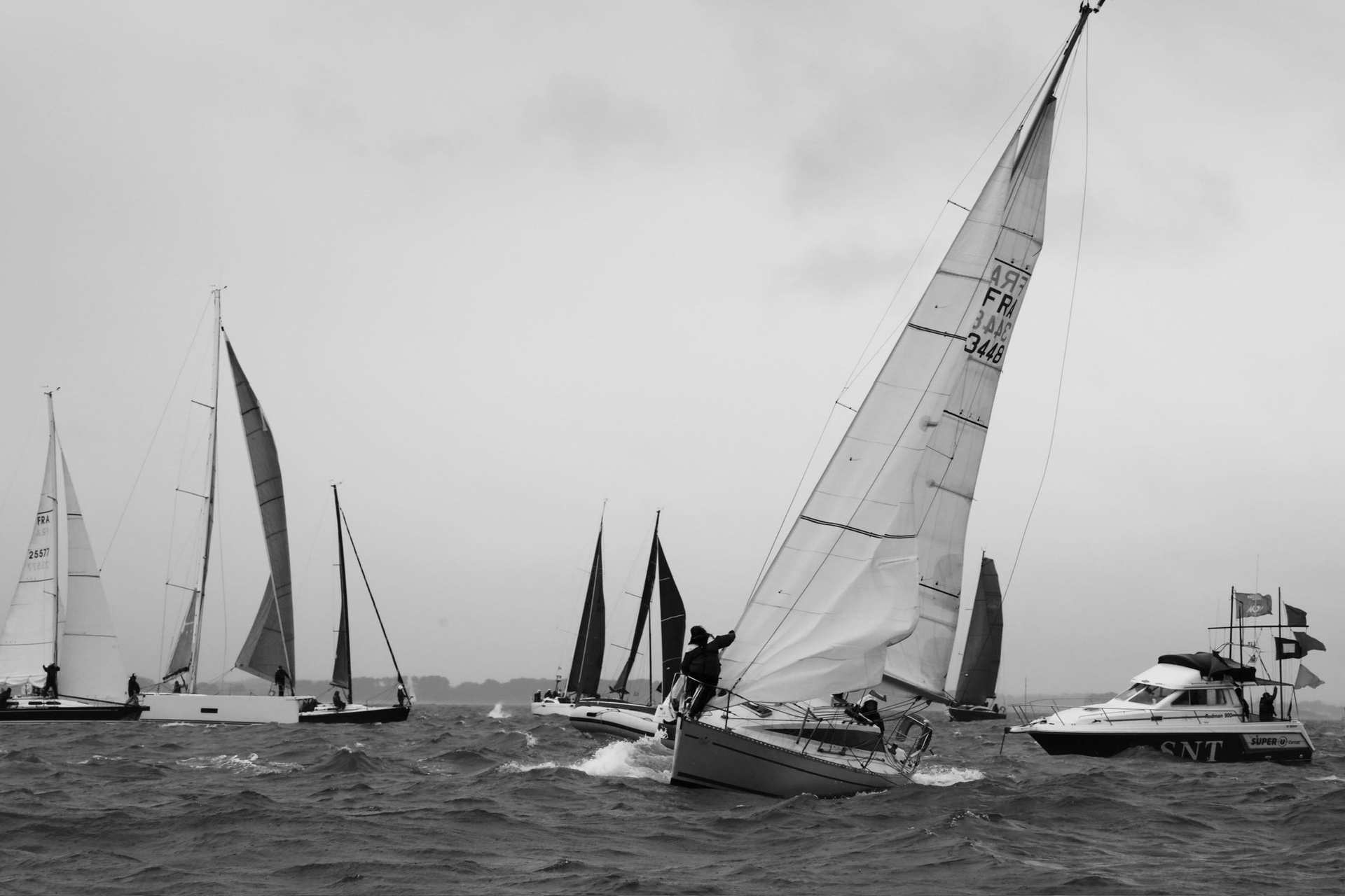 Серия «Регата» посвящена морю и морской стихии. Работы выполнены во время настоящей Регаты в Атлантическом океане, недалеко от городка Trinite-sur-Mer, что во Франции в регионе Бретань. Ежегодная регата проводилась накануне католической Пасхи, во время дождя и непогоды.